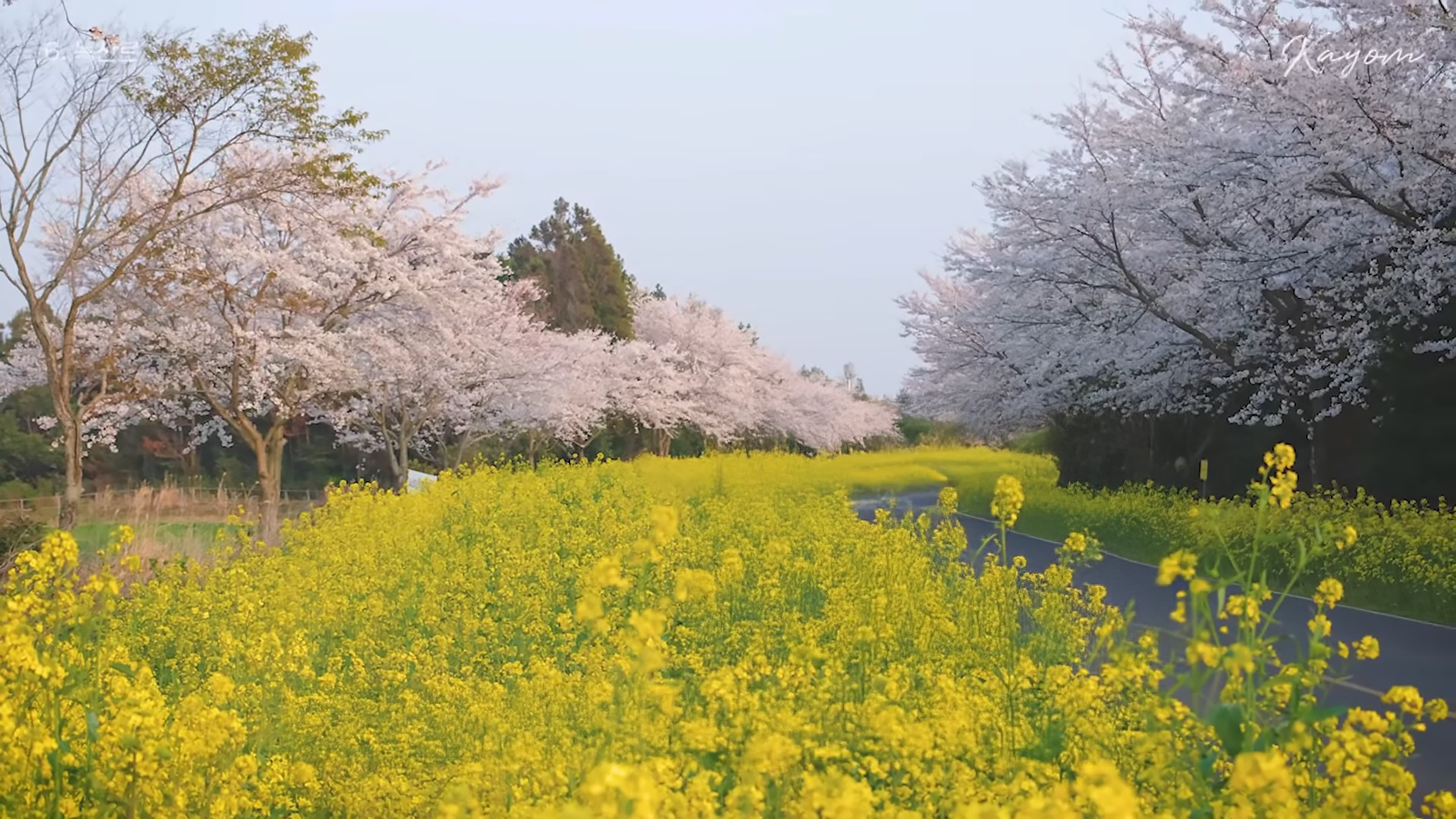 - 유채꽃과 벚꽃이 어우러진 도로