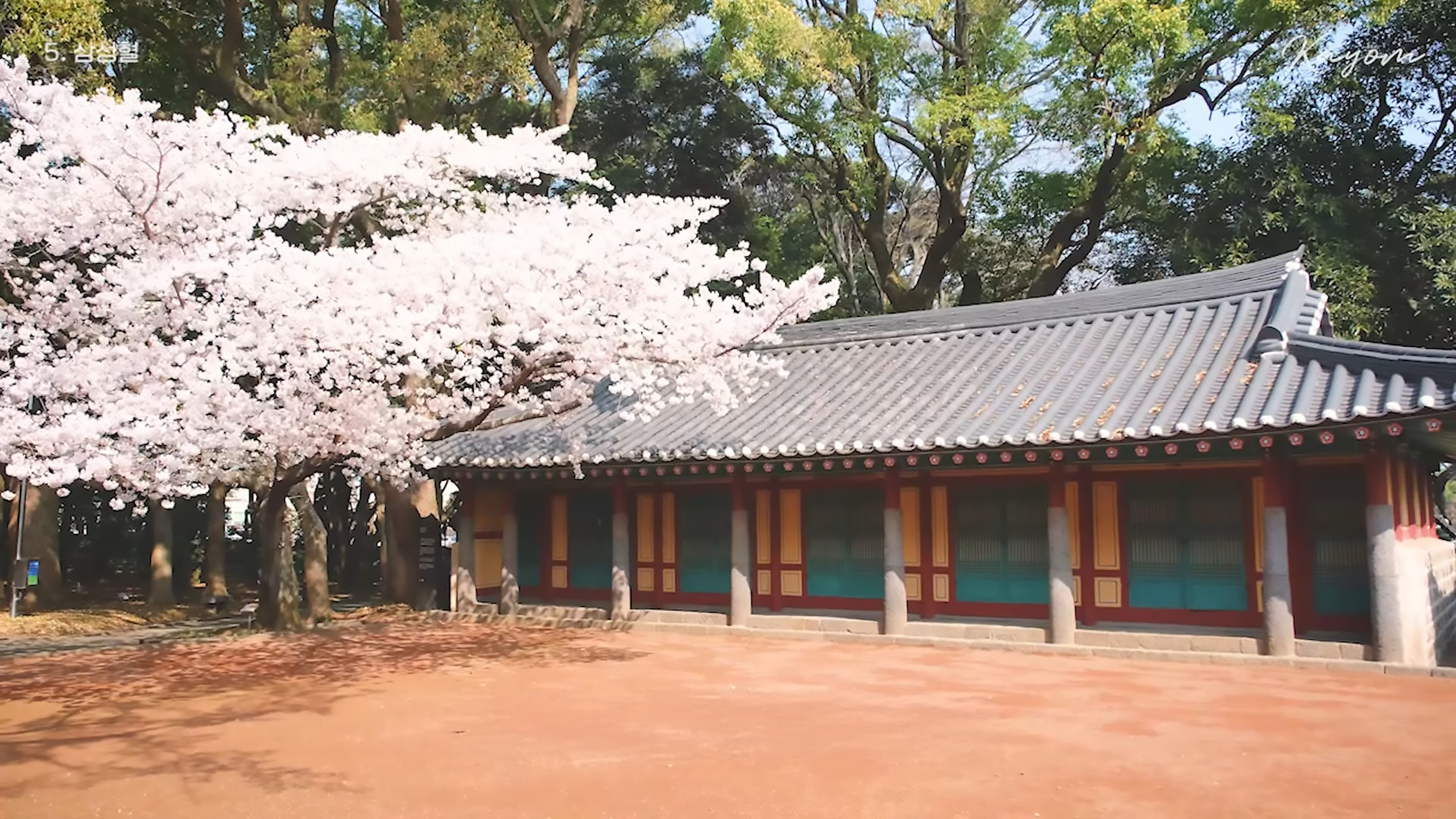 | 한옥 기와와 벚꽃의 조화 | 오전 시간대 |